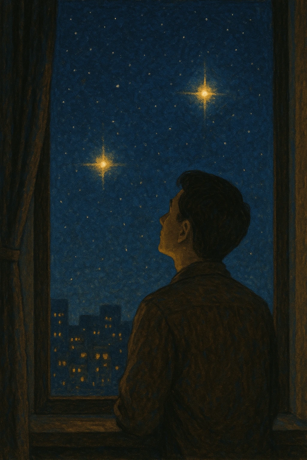 도시의 불빛 사이로 두 개의 별이 유난히 선명하다.