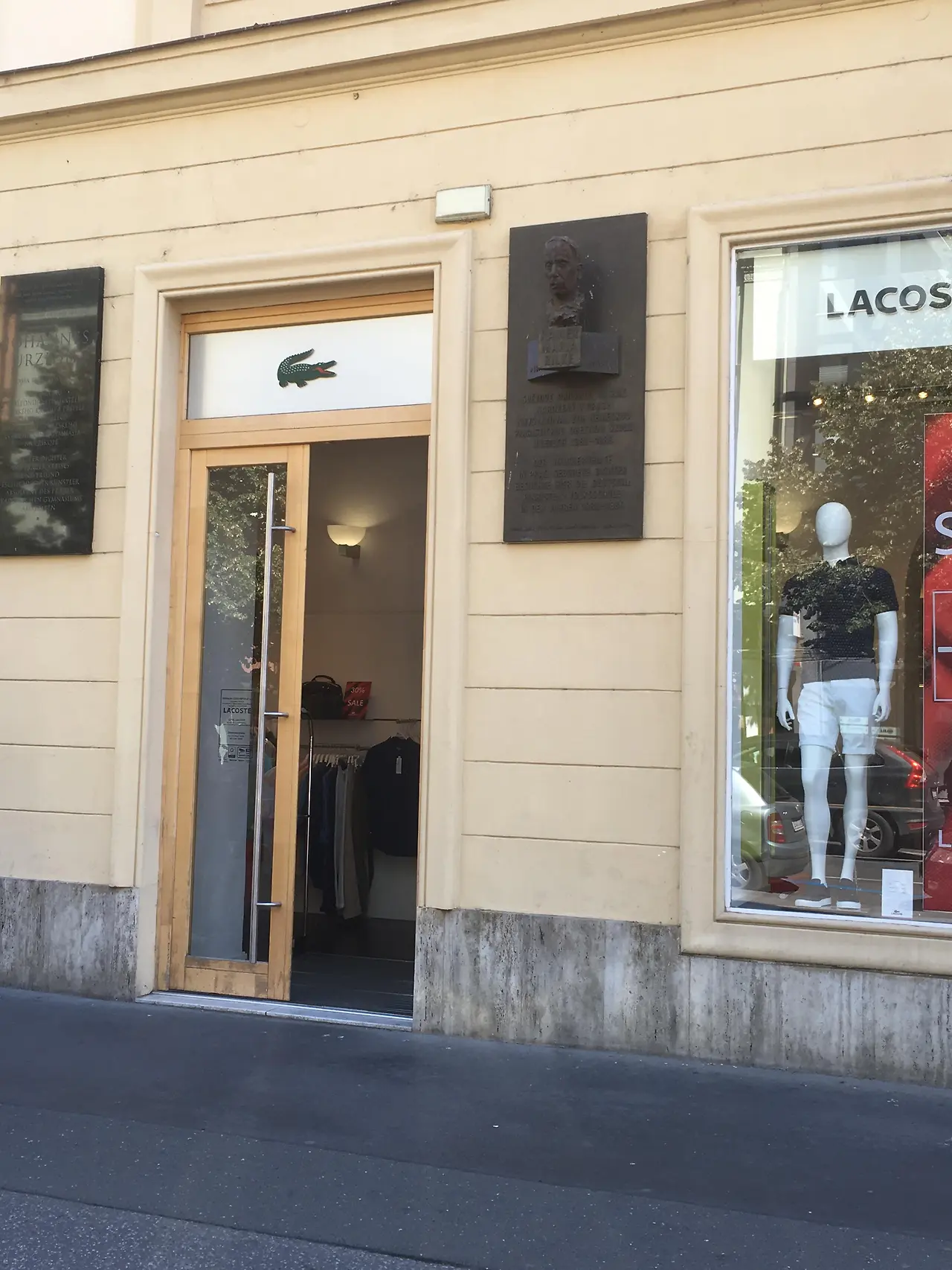 프랑스 옷 매장에 붙어있는 명판의 주인공은 누구일까?