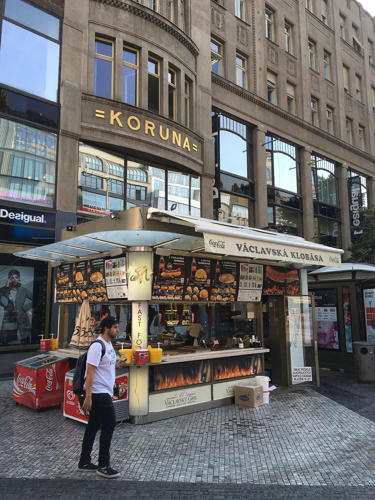 이제 여유 있게 산책을 하며 저녁 메뉴를 고를 시간. 점심을 푸짐하게 먹었으니 가벼운 저녁도 괜찮으리라. 그래서 선택한 것은 체크의 유명한 소시지가 들어가는 핫도그.