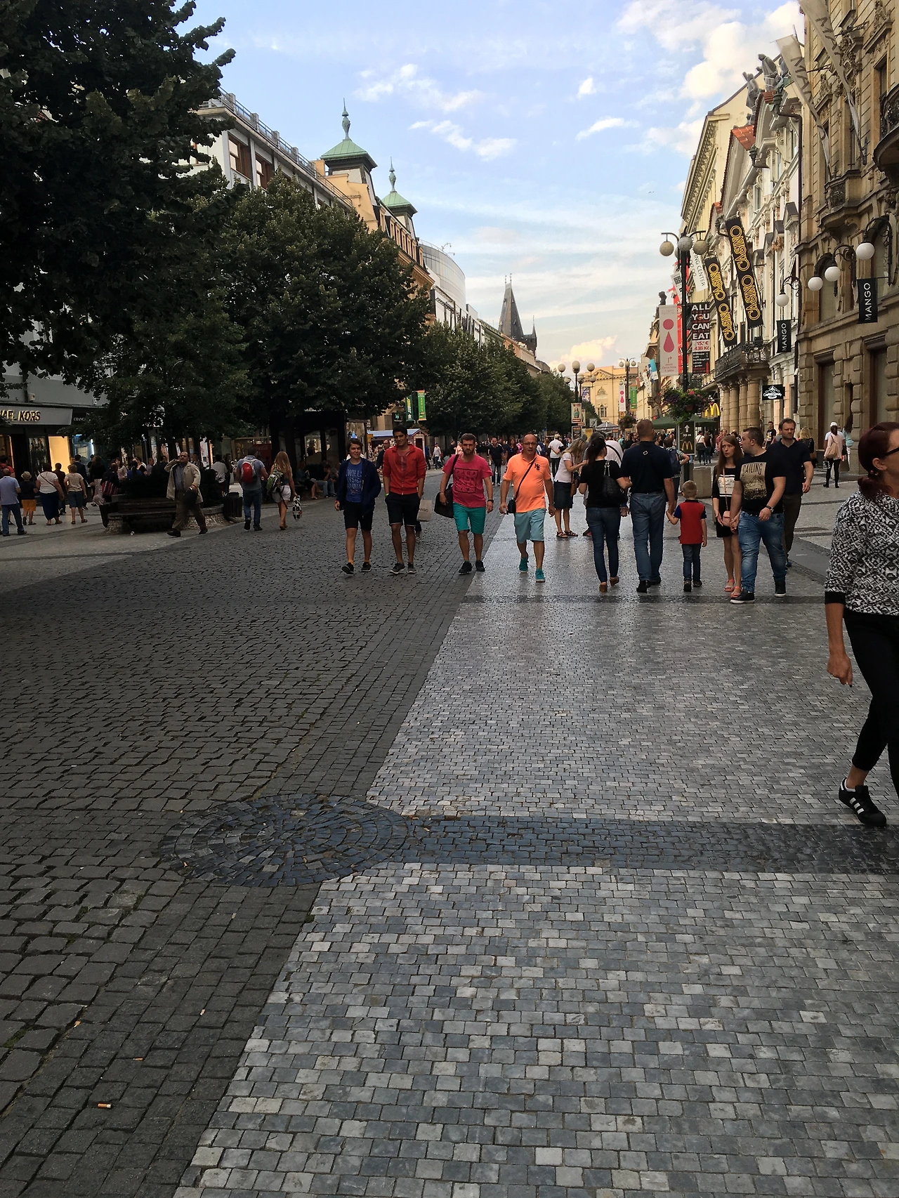 벌떡 일어선 배를 쓰담쓰담 달래며 프라하의 구시가와 신시가를 나누는 도로인 ' 나 프리코페Na Příkopě'거리로 들어섰다. 이 길은 과거 성벽과 해자가 있어 프라하와 외곽 마을을 구분하고 있었다. '나 프리코페'라는 길 이름은 "해자 위"라는 의미로 우리말로 풀어보면 "해자 길" 정도로 이해할 수 있다.