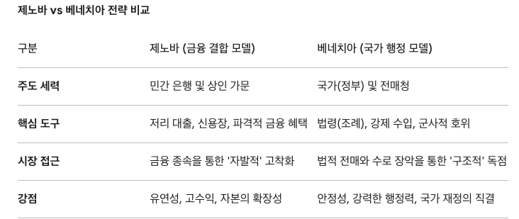 "생산 단계의 관여"는 생산 인프라에 대한 직접 투자를 의미하며, 이를 통해 확보한 "가격 결정권"은 공급의 독점적 지위에서 나온 것이다. 제노바는 소금을 단순한 상품이 아니라, 자신들이 가격을 마음대로 주무를 수 있는 '전략적 통화'처럼 취급했다.