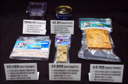 요즘의 우주 음식은 이렇다. 생각보다 별거 아닌 것 같지만 이 그림은 어디까지나 한창 개발 중인 음식들의 근황이다. 미국 400가지 러시아 300가지를 포함해 한국과 일본의 우주식량까지 합치면 아주 다양한 조합의 식단을 짤 수 있다. 한국은 지난 2008년 우주인 프로젝트에서 우주 고추장과 수정과를 비롯해 우주 라면, 김치까지 선보였다. 당시 우리나라 최초의 우주인이었던 이소연 박사는 밥에 고추장을 비벼 먹을 때 다른 나라 우주비행사로부터 ‘잼을 밥과 함께 먹는다’는 말을 듣고 웃으며 고추장을 나누어주자 매운맛에 놀랐다는 일화를 소개하기도 했다.