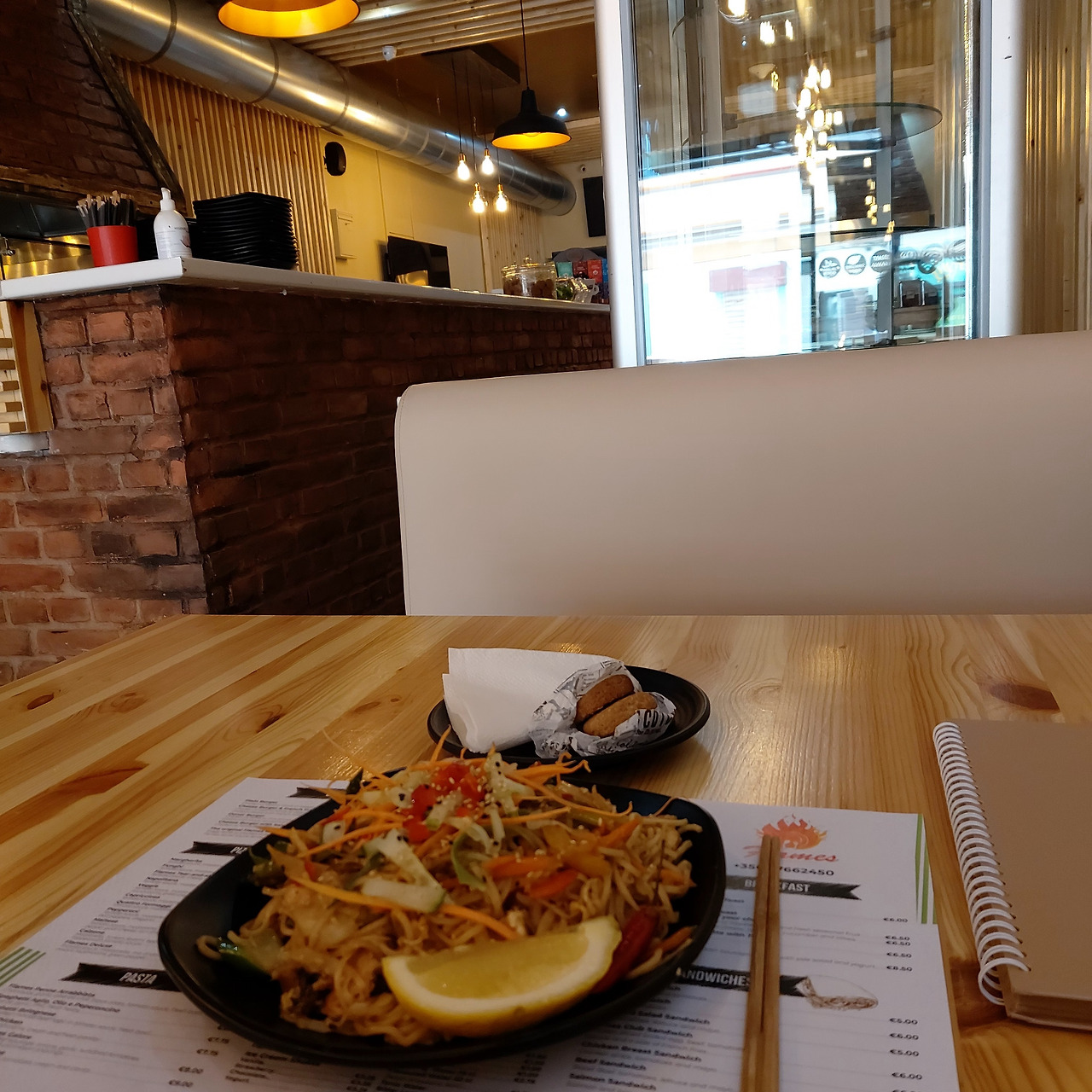 오늘 해야 하는데 잠깐 미뤄놓고 수업 후 집 옆의 flames 레스토랑에서 누들을 먹었다.