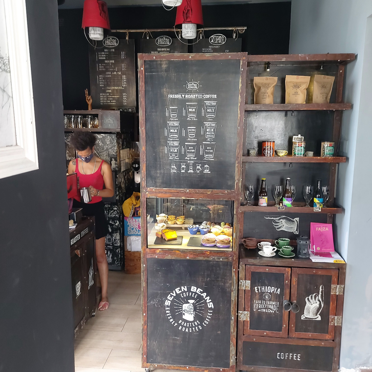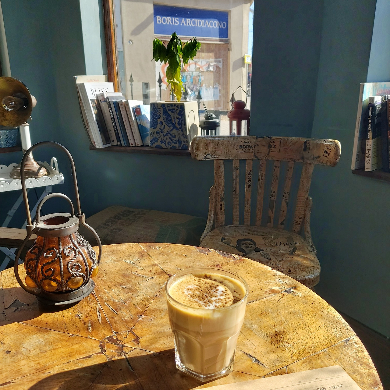 사람들이 많아서 카페 안쪽의 바 같은 테이블에 앉아 있는데 먼지가 많다. 이 예쁜 곳을 혼자 운영하나?