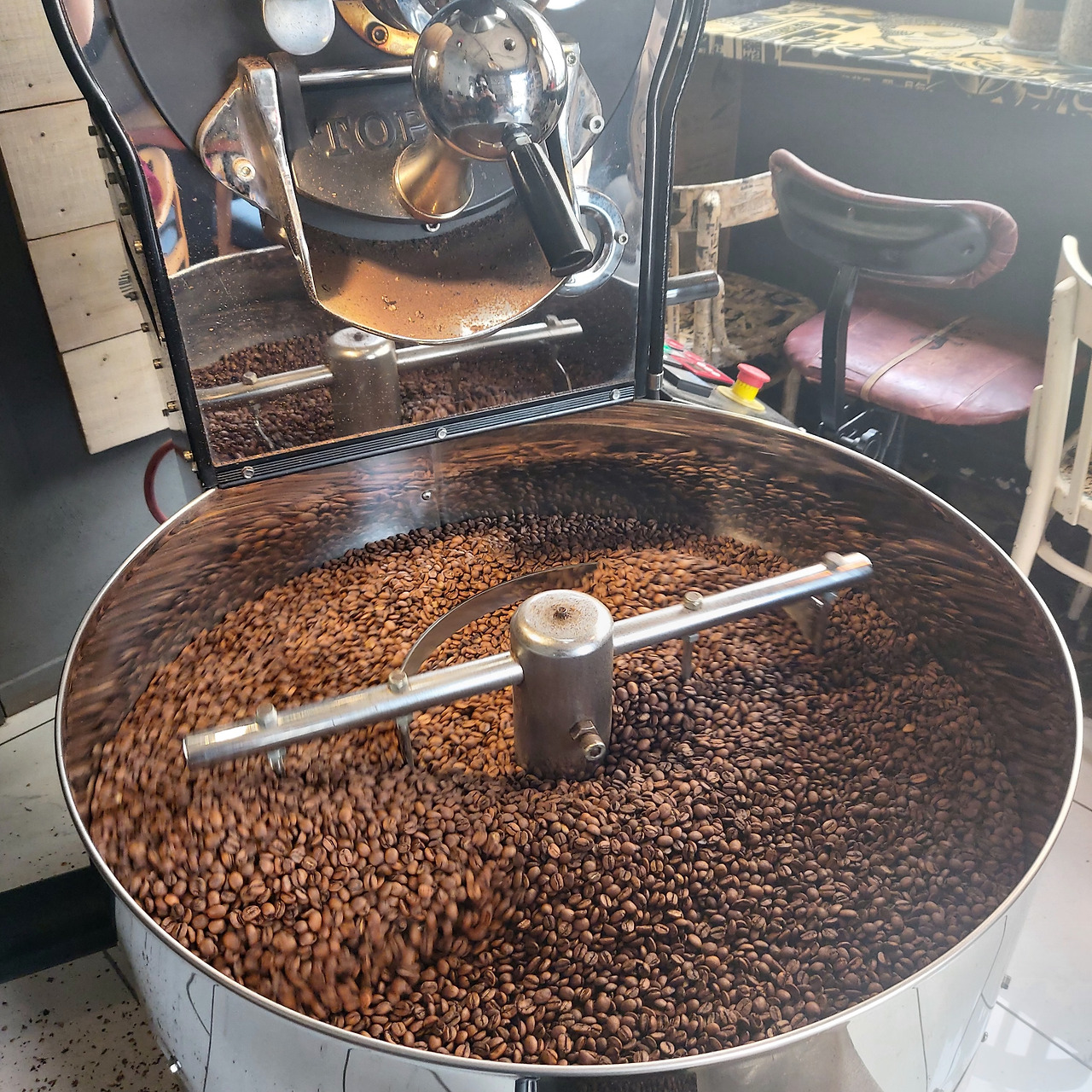 카페 한가운데에 커다란 로스팅 기계가 주인마냥 놓여있다.