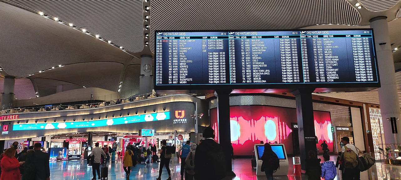 몰타로 가는 비행기 탑승 시작을 알린다.