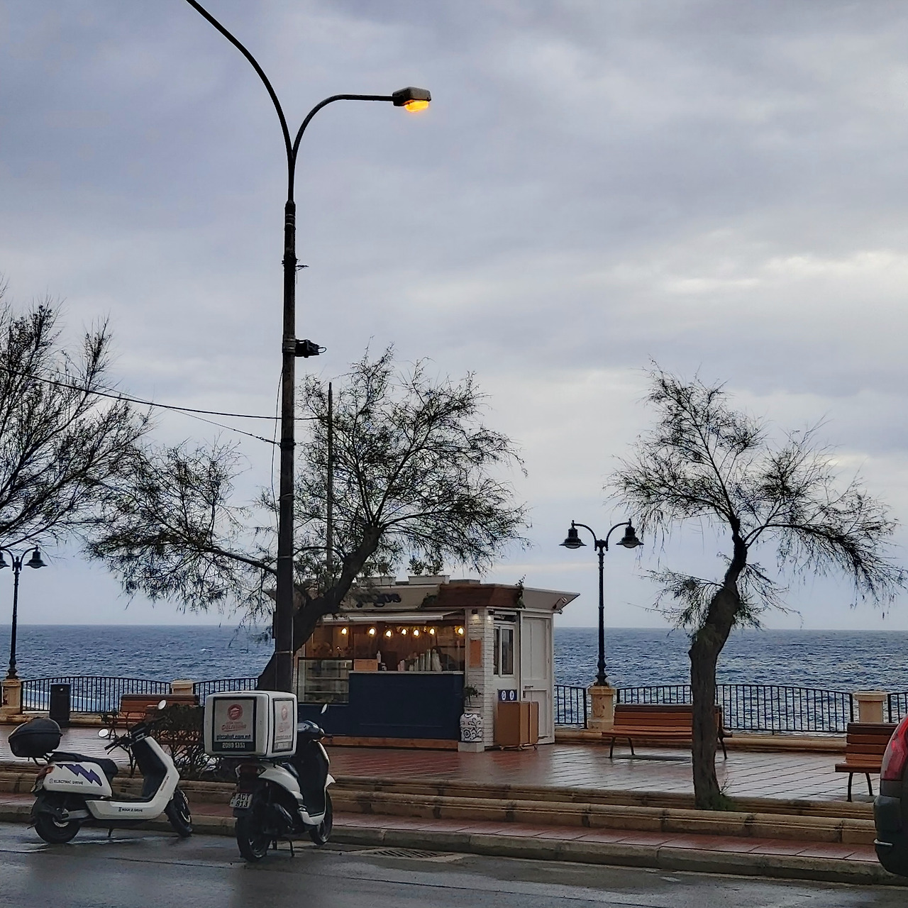 그래도 파도소리와 짙푸른 지중해의 출렁임과 놀이터에서 아침운동 하는 사람들의 구령소리가 싱그럽다.