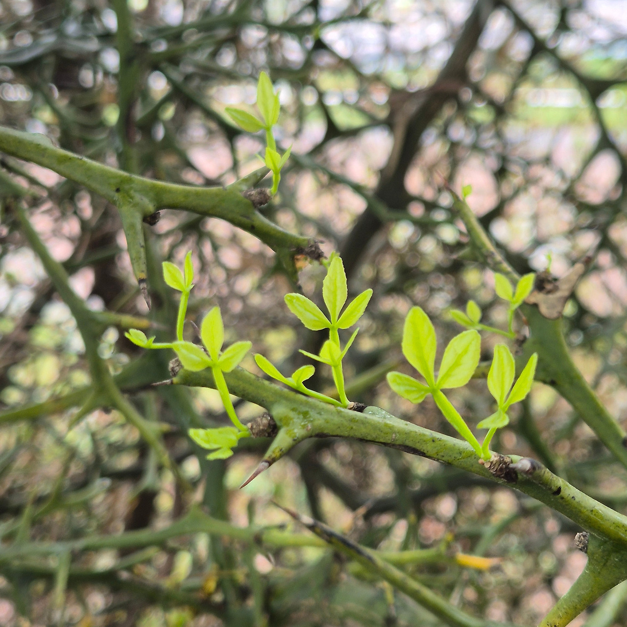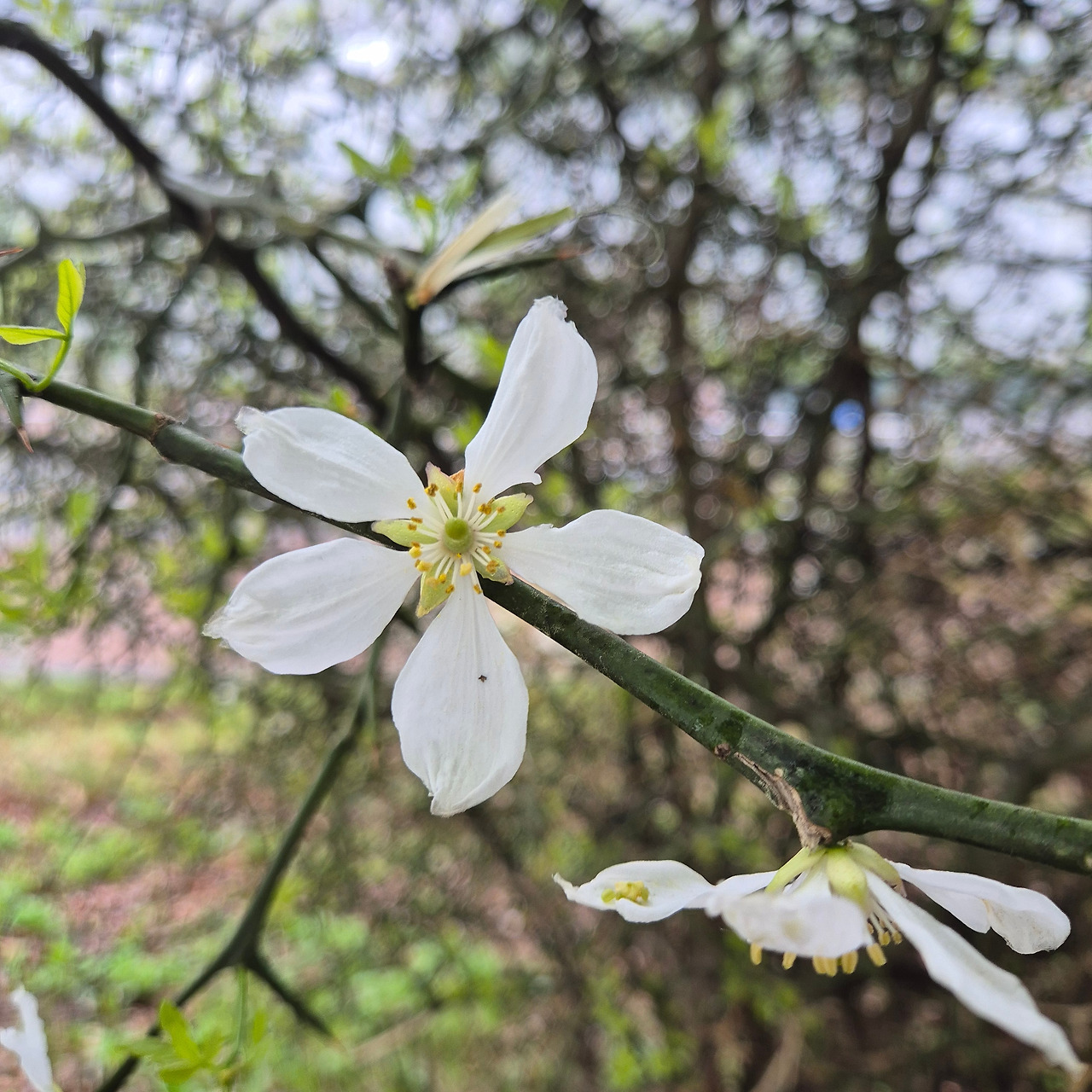 미사리 한강뚝방길의 탱자나무 어린잎과 꽃