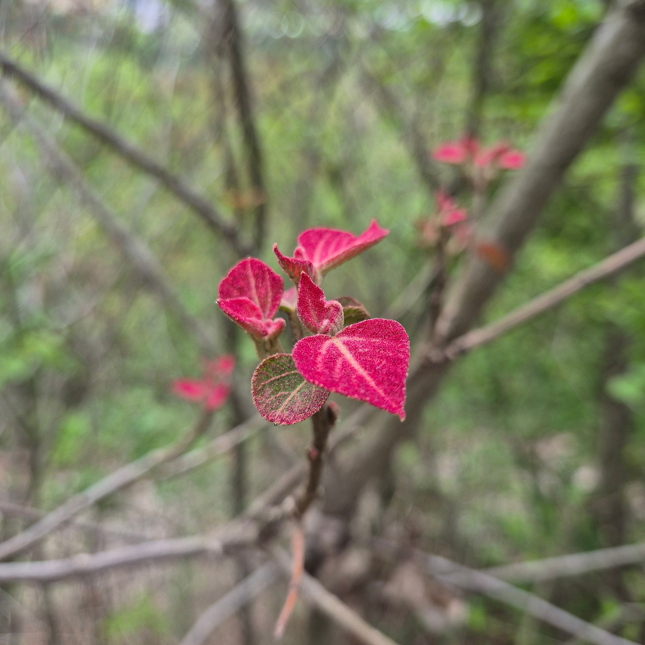 보성 녹차밭 옆 산의 예덕나무 어린잎
