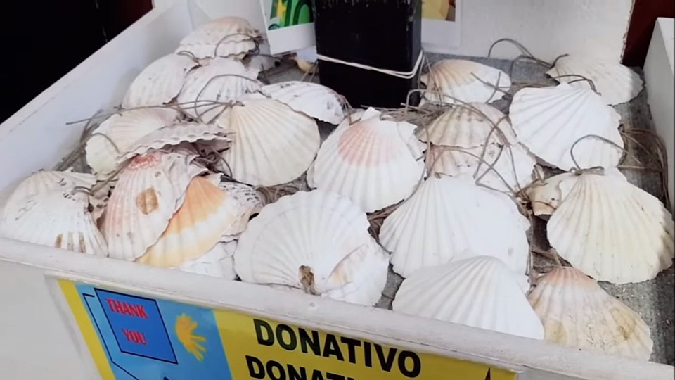 순례자 여권인 크리덴시알을 손에 쥐고 일어서니, 아주머니 순례자 분께서 손가락으로 옆을 가리키셨다. 도네이션(기부)으로 조개껍데기를 가져갈 수 있게 모아놓은 상자였다.
