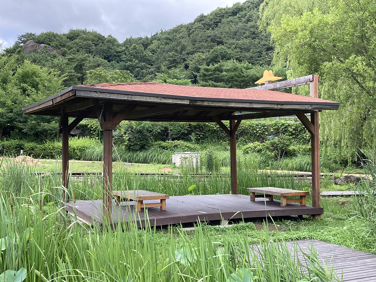 직접 볶은 커피를 담아와 여기 낮은 원두막에 앉아 글을 쓴다. 다짐관 달리 잘 안 써지는 글이지만 이렇게라도 글을 써야