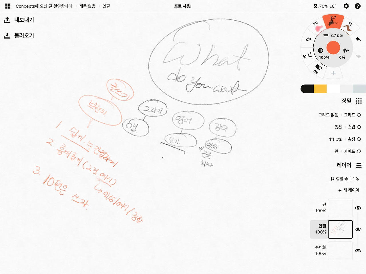 컨셉이라는 앱은 무한 확장되는 페이지 특성으로 계획작성할 때 유용하다.