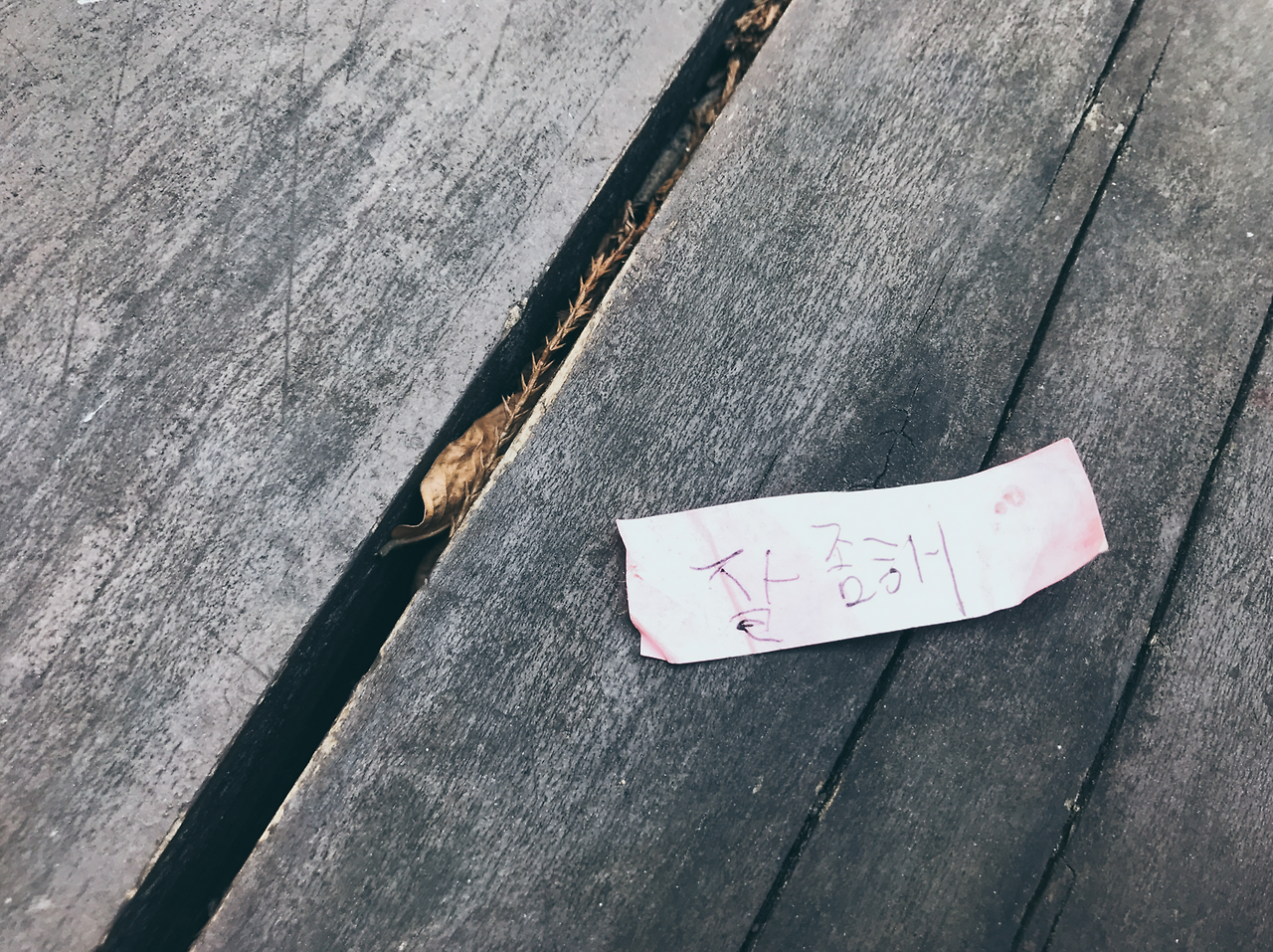 더러운 벤치에 구겨진 종이 포스트잇의 글자가 궁금해서 펴본 내게..
