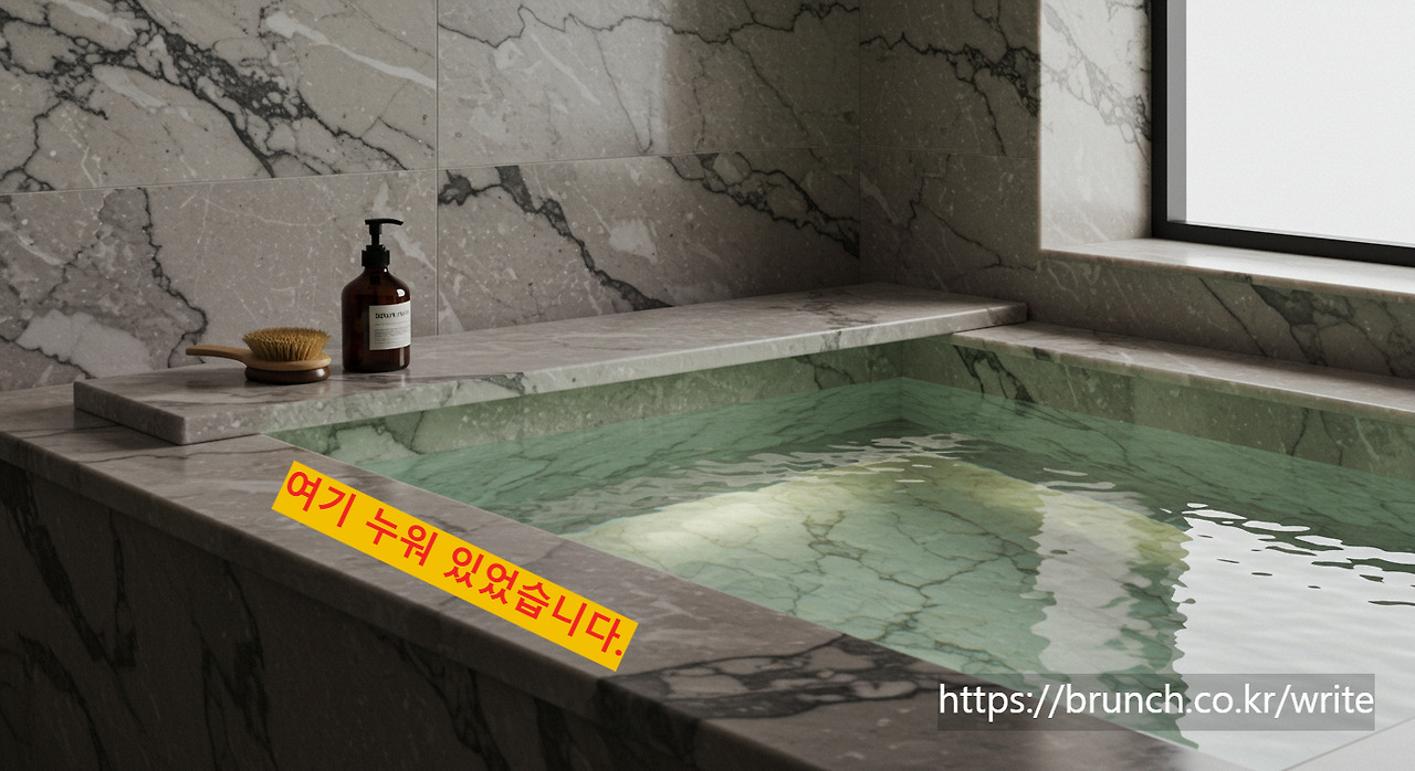 대리석 턱 같은 곳이라고 할까요? 이내 지쳐서 탕 안도 아니고 밖도 아닌 곳에서 오른쪽 다리만 탕에 집어넣고 몸은 바깥에만 있는 그런 상태로 누워버렸습니다. 지금 생각하면 사람들의 통행을 방해하는 일이라 꽤 민폐짓 같겠지만, 그 당시 제가 느끼기엔 몸집이 작아서 그 자세가 매우 자연스럽게 느껴졌고 사람들도 그냥 어린 애가 누워있구나, 하고 넘기는 그런, 그러니까 아주 거슬리지는 않으며 약간 초점을 흐려서 주변시로 봤을 때 굉장히 이질감이 없는 그런 그림 속 한 장면처럼 누워있었습니다.