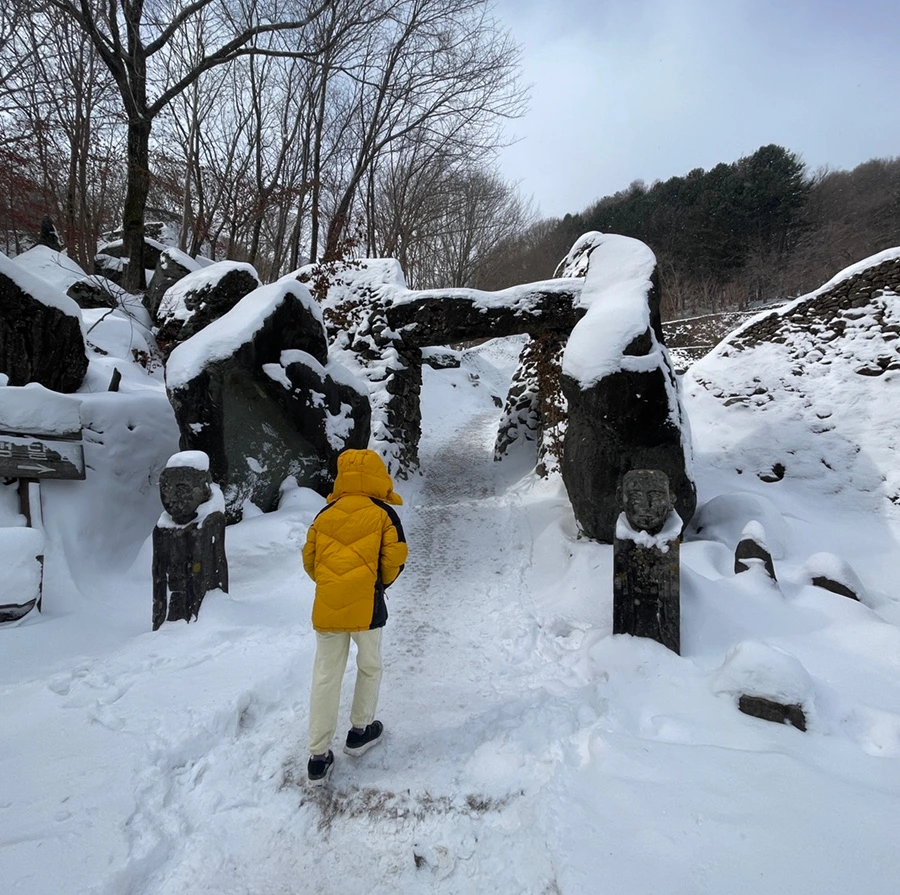 겨울왕국이 된 삼성궁은 너무나 아름다웠으나, 삼성궁은 나름 산행을 해야 하는지라 눈이 꽤나 많이 온 이 상황에 과연 입장해도 될는지 망설여졌다. 방금 막 구경을 마친 관광객 몇 팀을 붙들고 다짜고짜 묻기 시작했다. 눈 때문에 바닥이 너무 미끄러워서 코스의 반만 갔다는 팀도 있었고, 볼 거 하나도 없고 순 돌덩이 밖에 없다며 손사래를 치는 팀도 있었다.
