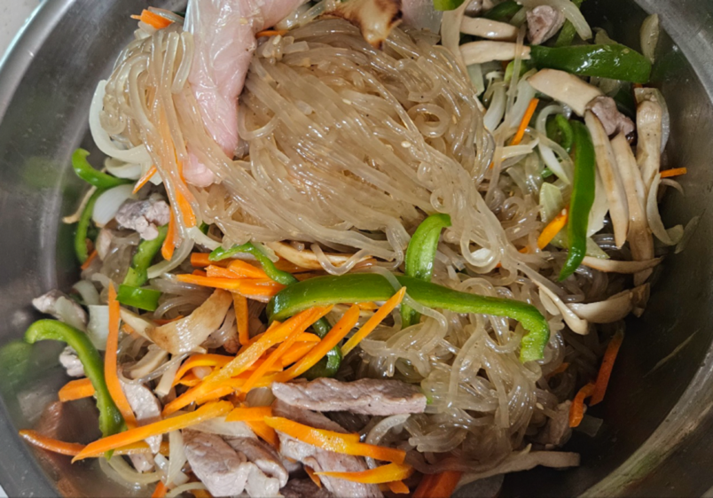 4. 이 모든 걸 섞어 간장과 설탕, 참기름으로 간을 맞춰야 진정한 잡채가 완성.