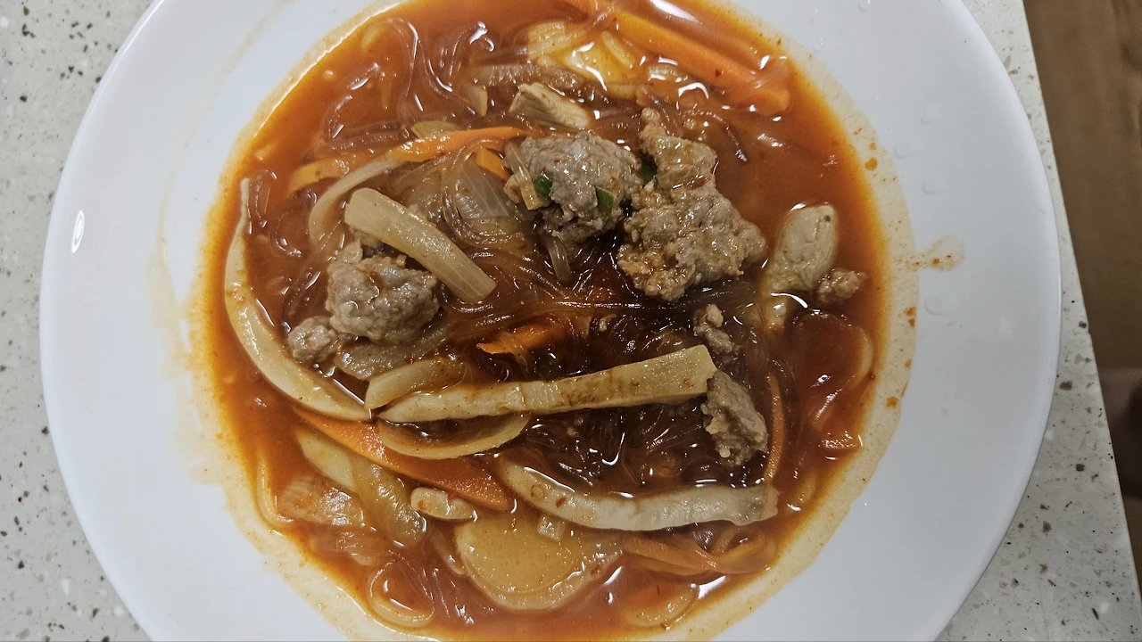 퇴근해서 온 남편이 잡채찌개를 보고는 눈이 동그래졌다.