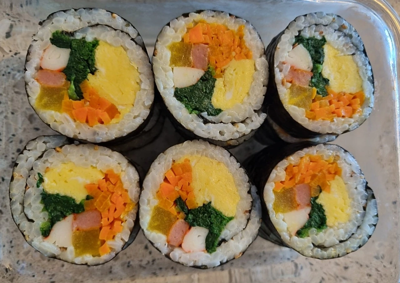 아이가 연습을 마치고 집에 왔고 나는 김밥을 다 쌌다.