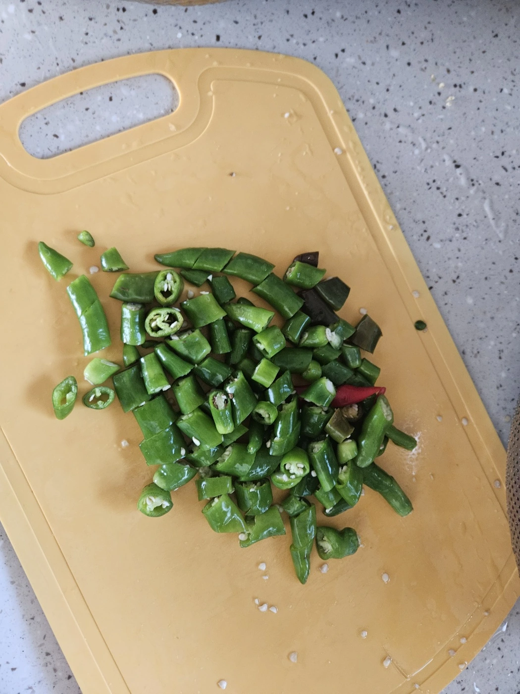 나는 오전에 사다 냉장고에 보관했던 청양고추를 씻었다.