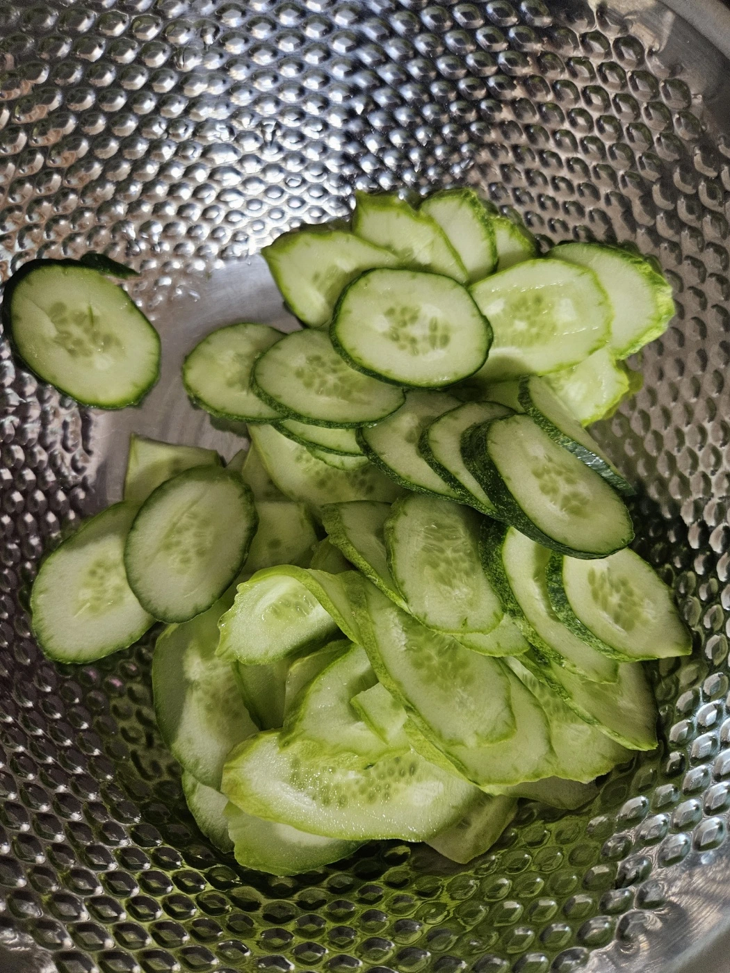 나는 우선 오픈샌드위치를 만들기 위해 냉장고에서 며칠 전 사둔 오이를 꺼냈다.