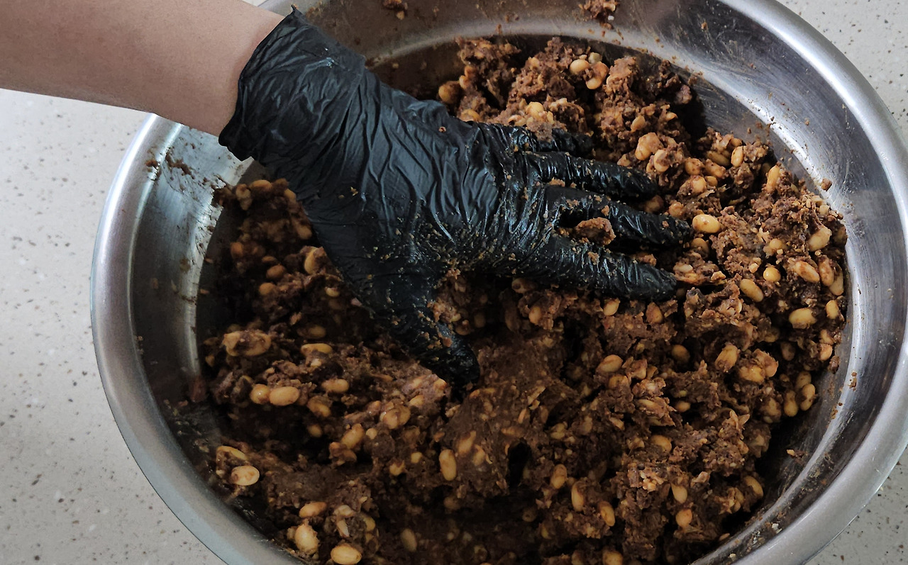 아무튼 삶은 콩이 으깨지도록 섞어낸다.
