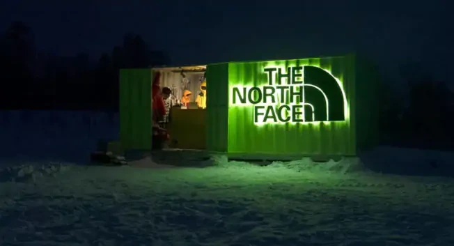 "극도의 스키와 오지 탐험에 관심이 있는 사람들"을 목표로 하는 이 팝업스토어에는 재킷, 부츠, 곡괭이를 포함한 노스페이스의 최신 컬렉션을 선보였다. 이번 팝업스토어는 고립된 지역에서 탐험하거나 스키를 타는 모든 사람들에게 정차 지점이 되었다.