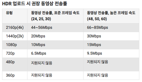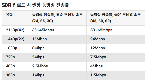 프레임속도 : 녹화 당시와 동일한 프레임 속도 추천 초당 24, 25, 30, 48, 50, 60 같은 일반 프레임 속도와 더불에 이외 프레임 속도도 허용 된다고 합니다.