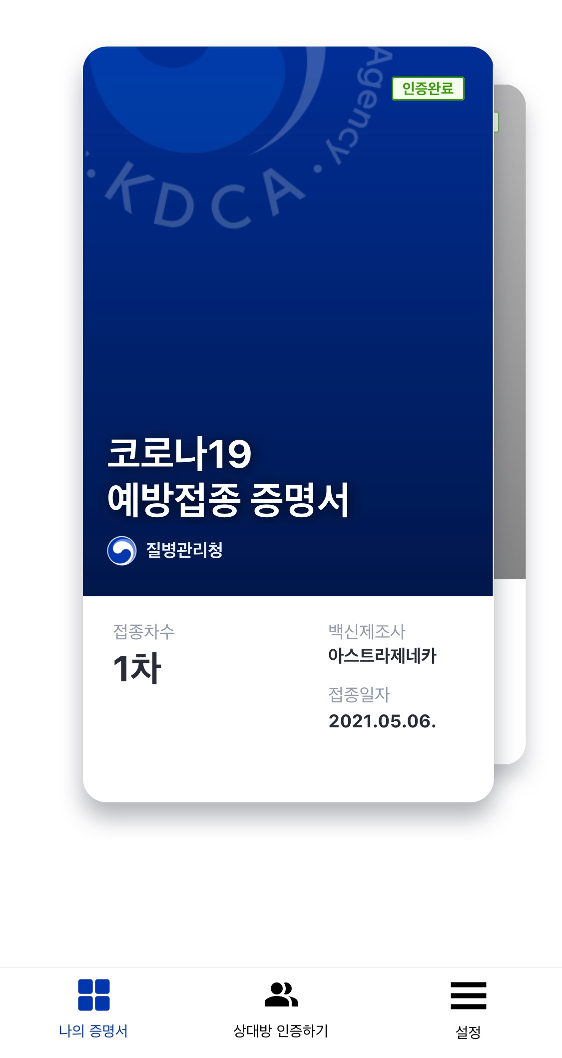 접종이 완료되면 코로나19 전자예방접종증명 앱에서 1차 접종에 대한 증명서를 발급받을 수 있습니다.