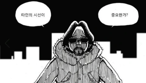 우리는 ‘타인의 시선을 의식하지 말자’고 외치며 살지만, 인간은 사회적 동물이기에 실제로 전혀 의식을 하지 않고 살 수는 없다. 그 외침은 ‘코로나 확산 방지를 위해 사회적 거리두기를 실천하자’는 공익적인 성격보다는 타인의 시선에 위축된 나의 마음속 자유의지에 관한 연민, 그 억울함에 대한 표출, 또는 그것을 극복해 낸 당당한 본인의 모습에 대한 자부심에서 비롯되었다고 생각한다(물론 남에게 피해를 끼치는 건 전혀 다른 문제이다).