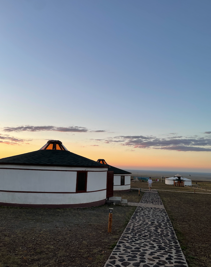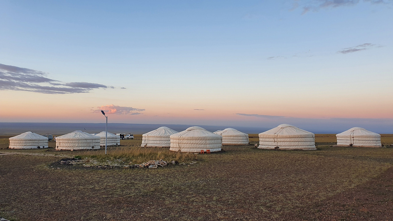 노을빛과 멀리 보이는 게르