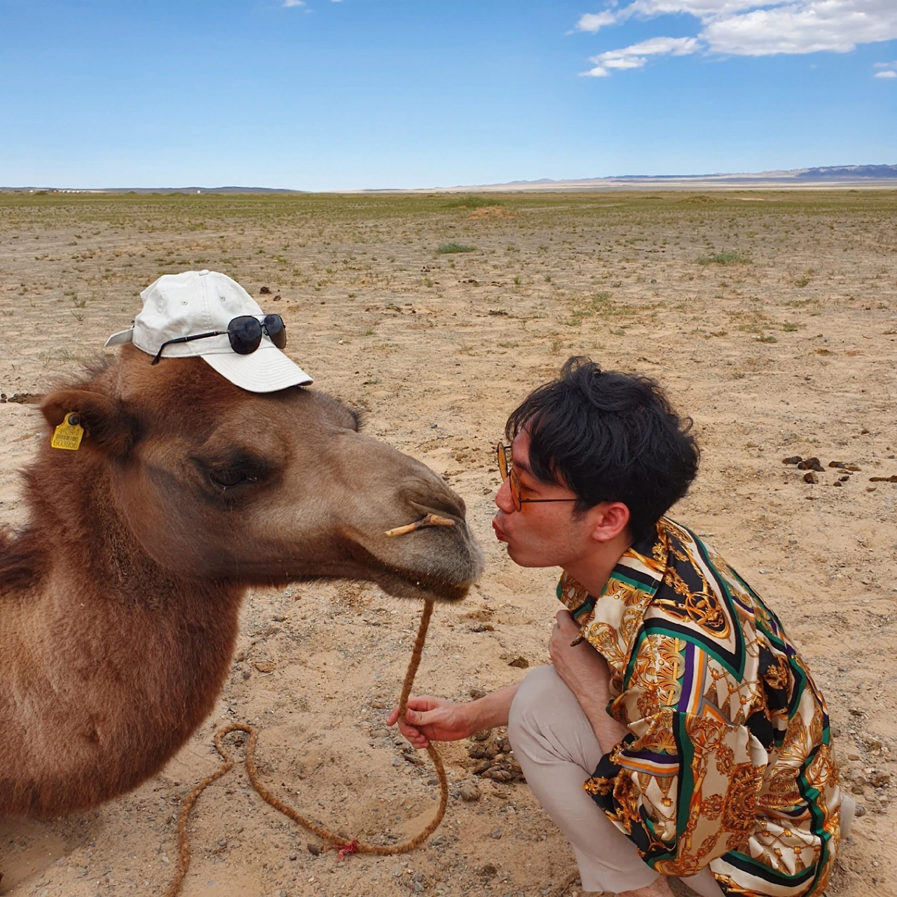 낙타들은 미묘하게 표정이 달랐다. 한 친구는 좀 건드리면 안될 것 같았고, 한 친구는 우리에게 호의적이었으니 이 친구를 골라 뽀뽀하기로 결심했다. 거절은 거절한다. 내가 한국에서 출발할 때부터 결심했던 일이기에 포기할 수 없었지.