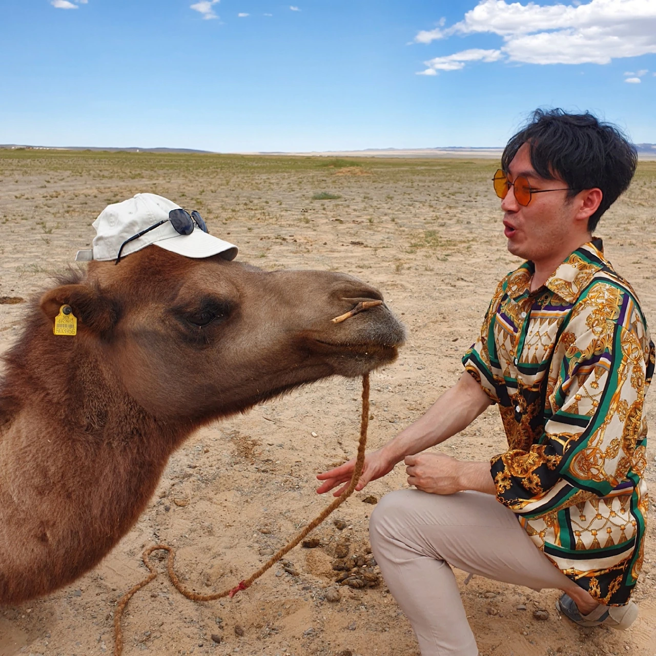 귀여운 모자와 선글라스를 쓴 낙타에게 조심스레 다가가자 그는 마침내 고개를 살짝 갸우뚱 하더니 다가왔다! 그리고 나는 순간 뒷걸음질 쳐버렸다. 그에게 상처를 주고 말았다. 내가 다가가놓고 막상 다가오니 내빼는 이런 어처구니없는 상황에 나는 더이상 그 친구 자존심에 스크래치를 내고 싶지 않아 물러났다.