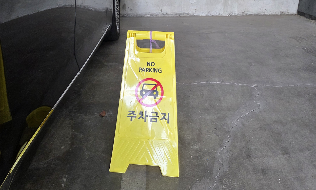 분명 차를 세우는 공간 같은데, 차는 안된다고 표시가 되어있으니 도대체 뭘 하는 공간인가 싶었을 거다.