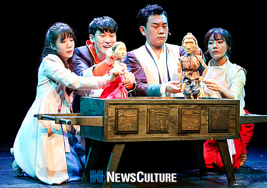 인형과 전통 소품을 활용한 이야기 구현은 소재와 잘 어우러져 극의 몰입과 미술적 완성을 더한다. 사실적인 무대 세트를 사용하는 대신, 긴 막대기와 상자를 활용해 공간을 연출한 점도 인상적이다. 이를 안무와 음악에 적극 활용하면서 동선과 볼륨의 효과도 높인다. 작은 소극장 무대를 하나의 놀이판으로 만들어낸 것이다. 밴드와 현악기, 전통 악기로 개성을 담은 음악은 풍성한 사운드를 자랑한다. 넘버는 후킹 송보다 전체적인 분위기와 상황을 서포트하는 쪽으로 더 기억에 남는데, 결국 이것이 <판>의 넘버가 가진 개성이자 장점이기도 하다. 의상과 조명, 소품의 디테일도 극의 결을 따른다. 그리고 이 모든 물리적인 요소를 능수능란하게 다루는 배우들의 호연까지. 탁 맞아 떨어져 움직이는 시계 태엽처럼, 모두 조화롭다.