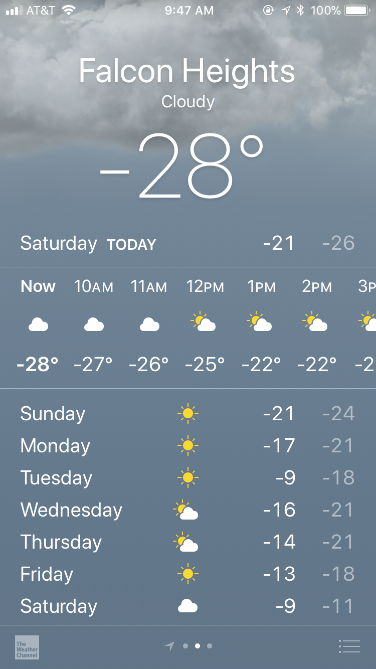 위에서 보는 것처럼 영하 28도까지 내려간 적이 있는 혹독하게도 추운 지난 어느 겨울날이었다.