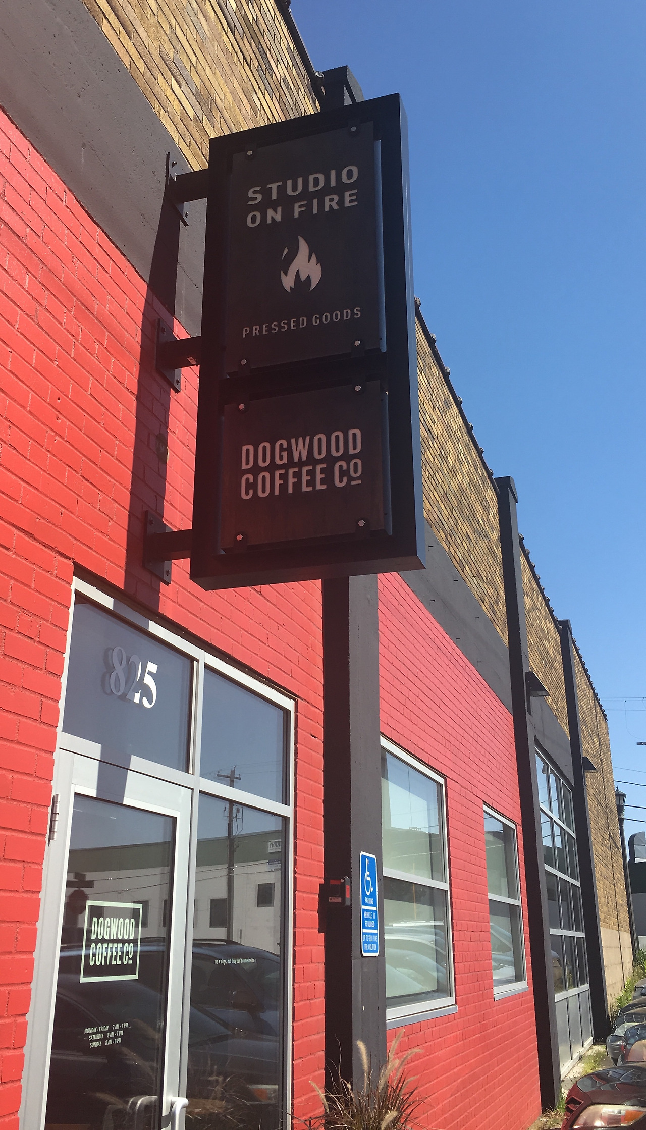 둘째, DOGWOOD COFFEE CO라고 쓰여있는 간판 위로 STUDIO ON FIRE라는 프린팅 서비스 회사가 있다는 것을 보여준다. 커피숍 내에서 투명한 유리창을 통해 프린팅 작업하는 모습을 그대로 볼 수 있다. 이런 게 진정한 '인더스트리얼 스타일'인가. 홈페이지를 방문했더니 dogwood 커피 포장지도 이 곳에서 프린트했다는 것을 알 게 된다. 특수 프린팅을 하는 회사라고 홍보하고 있다. 글을 쓰며 얻는 유익 중 하나는 들어서만 알고 있는 막연한 일에 대해 사실 직접 확인하면서 나 스스로도 정보를 얻게 된다는 것이다.