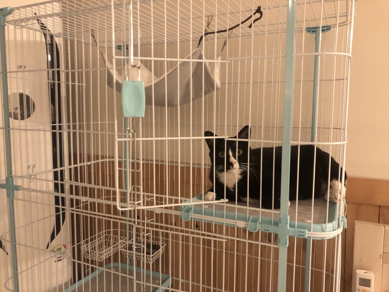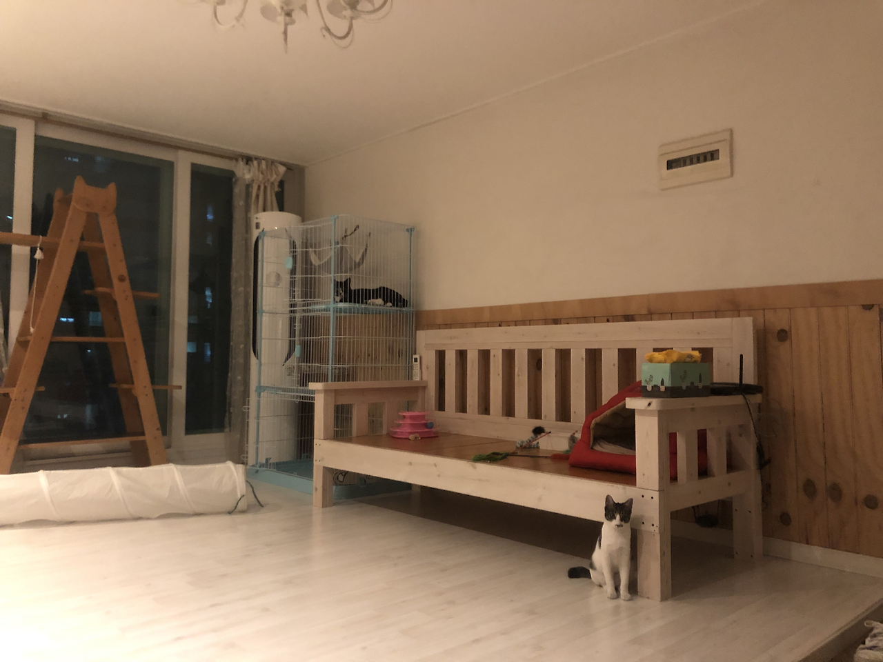 야생 고양이가 집에 있는 고양이한테 상처를 줄 수 있으니 격리용 케이지를 마련하라는 의사 선생님 말씀을 듣고 하나 샀다.