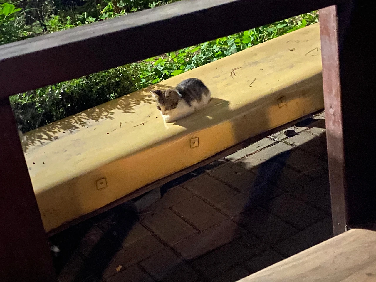 이미 밤마다 정자에서 놀아주고, 아침마다 밥을 준 터라 애기 고양이를 붙잡는 건 어렵지 않았다.