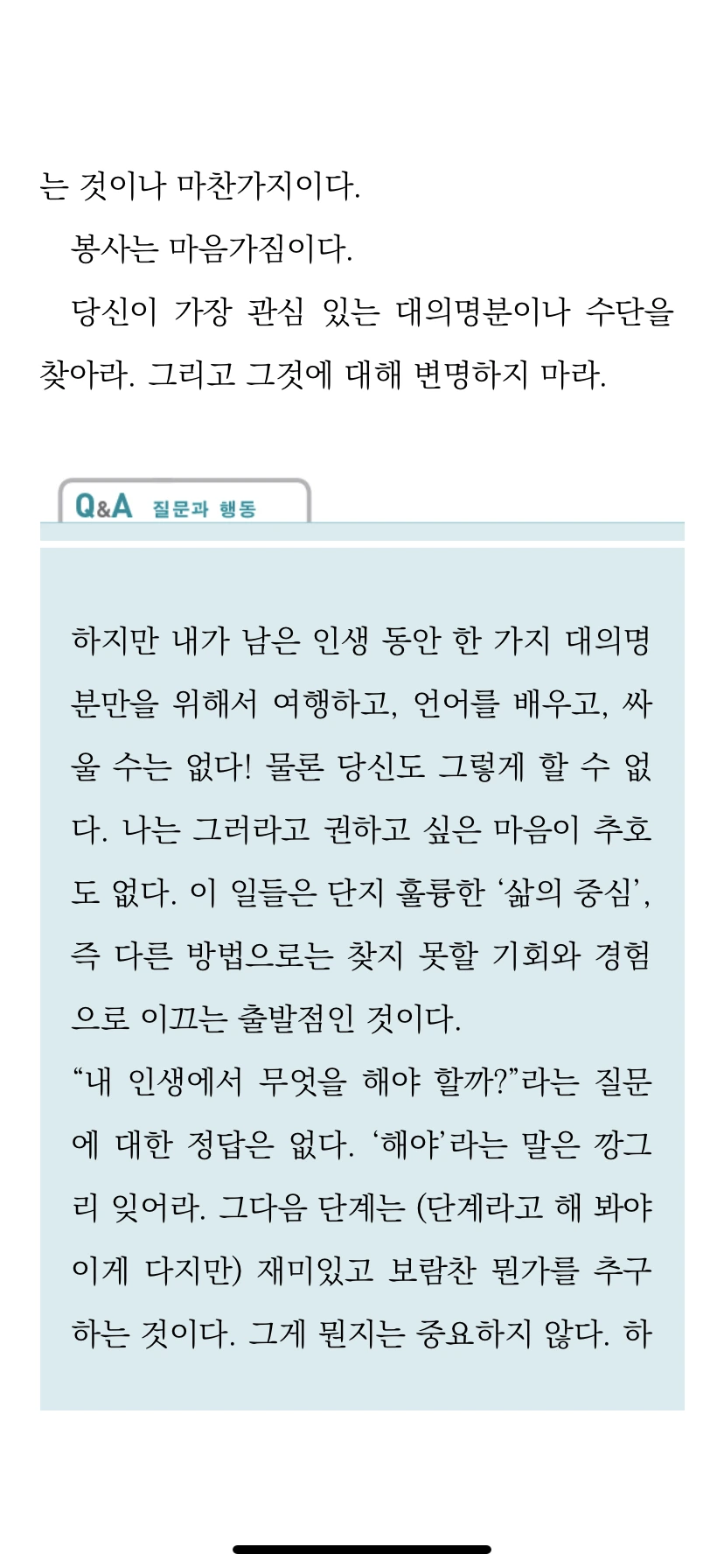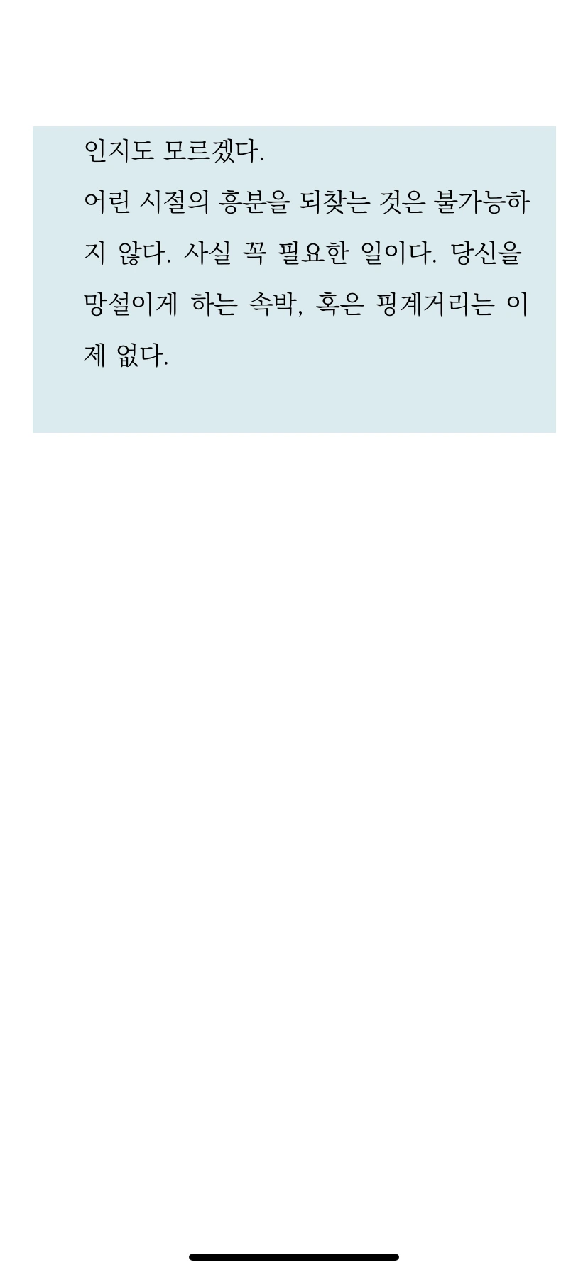이 책과 잠자리에 들기 전 1시간 동안 재미로 읽는 소설책을 제외하고는 독서 금지.