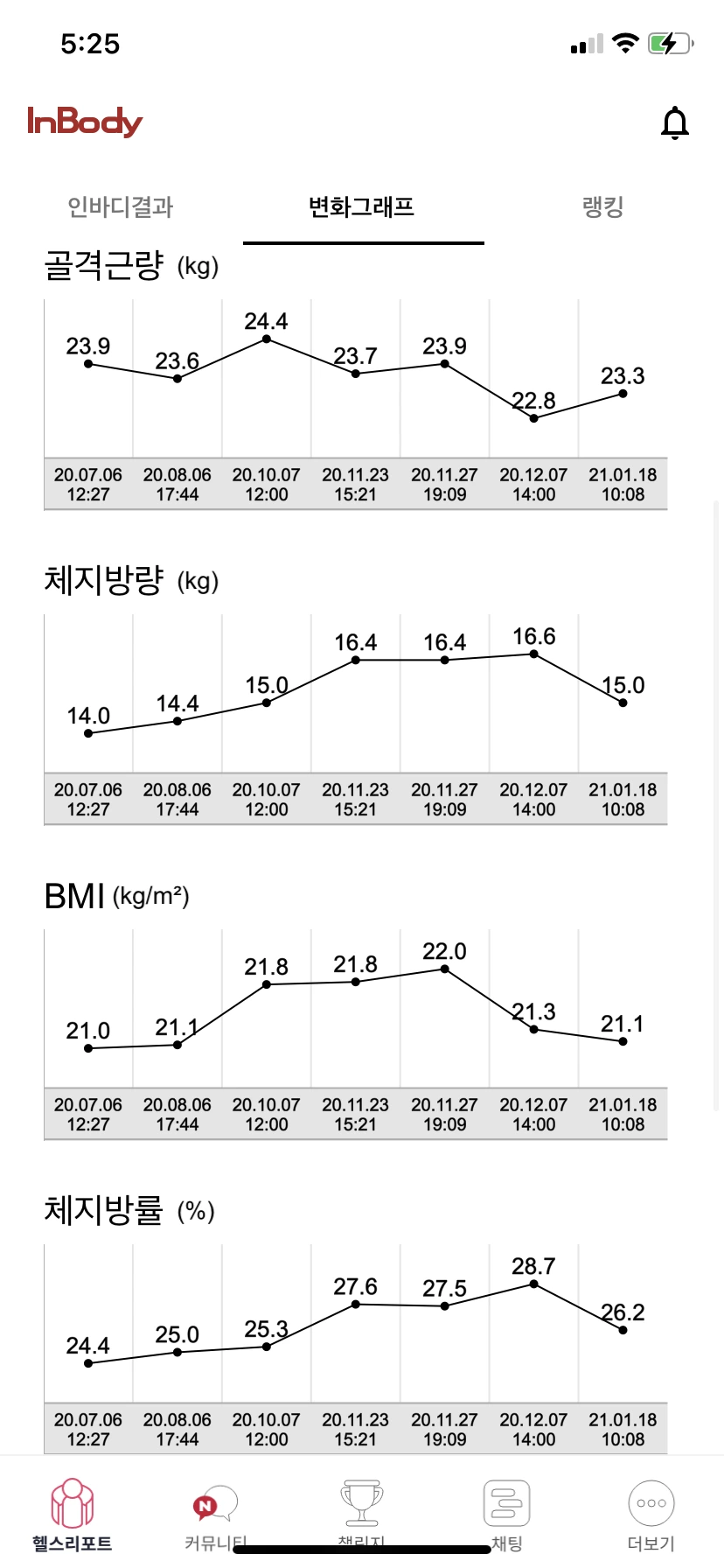 한 달만의 인바디검사