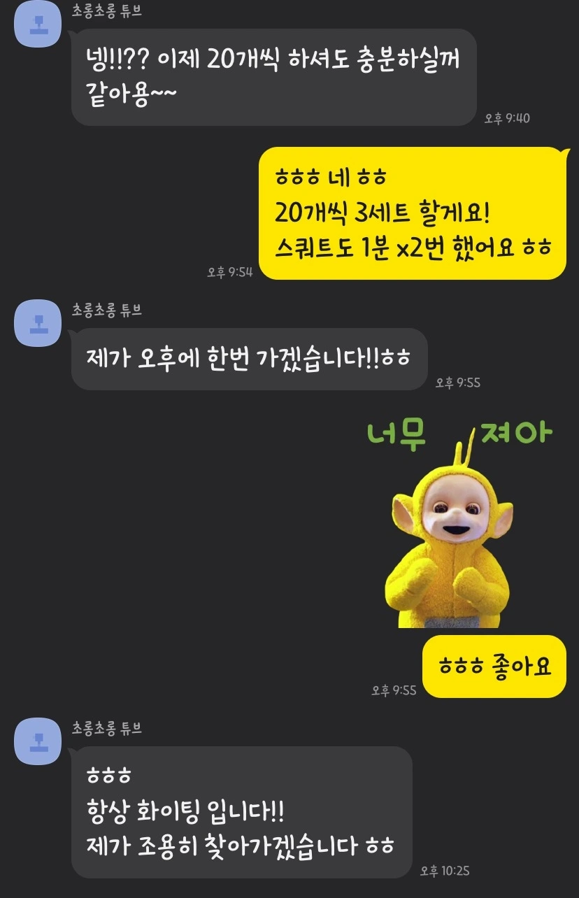 82 오전 근무임에도 오후에 헬스장에 와주신다는 트레이너 선생님 감사합니다.
