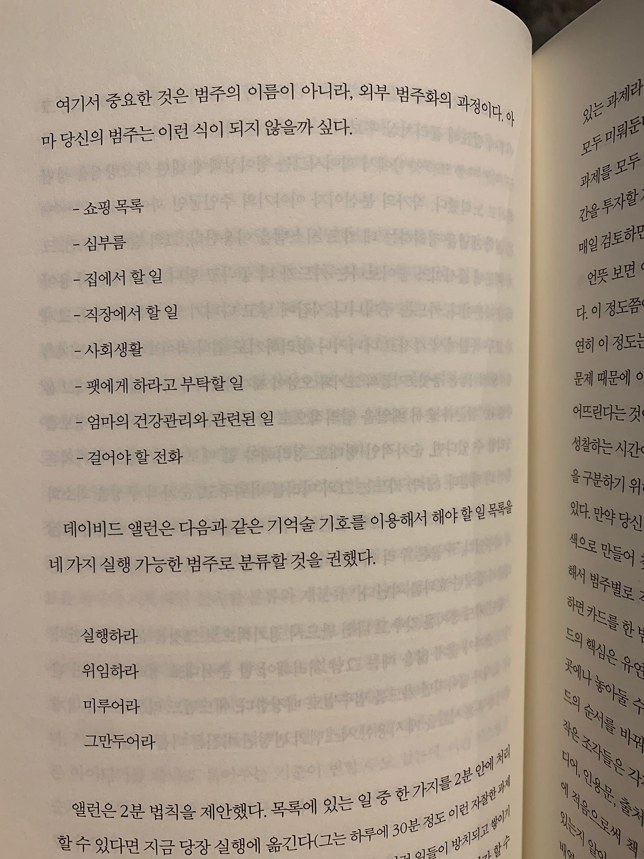 글로 기록하면 무언가 잊어버리지 않을까 걱정하고 그것을 잊지 않으려고 애쓰는 데 들어가는 정신적 에너지를 아낄 수 있다.