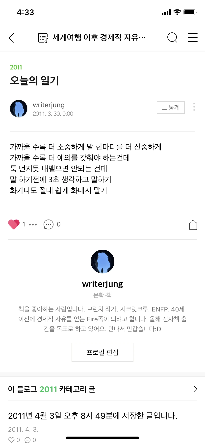 말하듯이 쓰되 단문을 사용하라고 했다. 경상도 남자의 일기장처럼 영 재미가 없었다. 버리자. 나에게 맞지 않는 조언은 과감히 버려버리자.