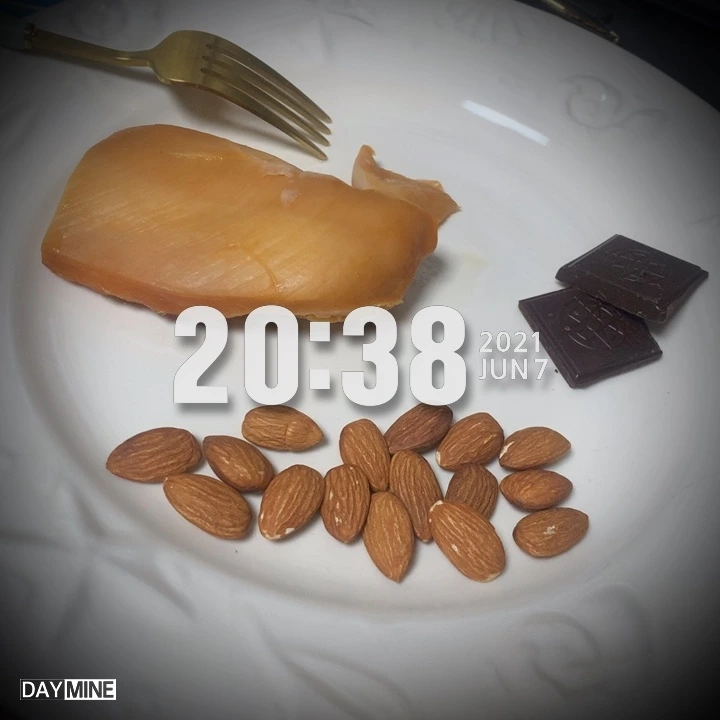 진정시켰고 닭가슴살과 아몬드 88% 다크 초콜릿을 먹었다.