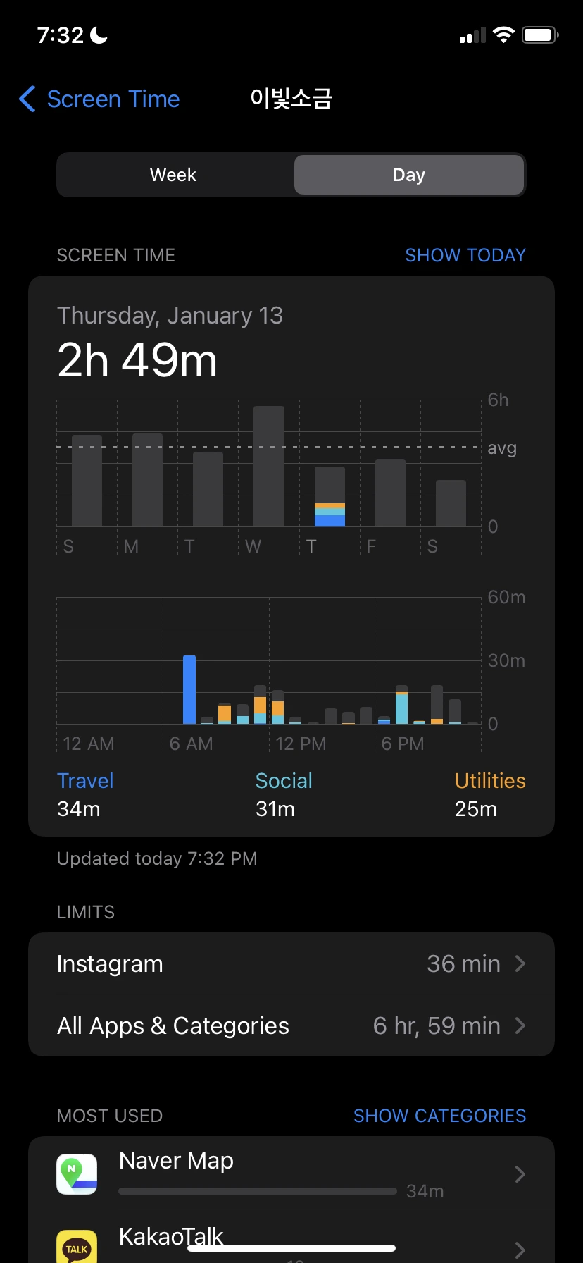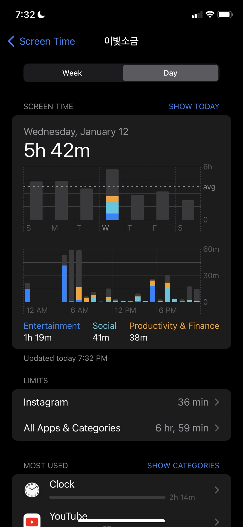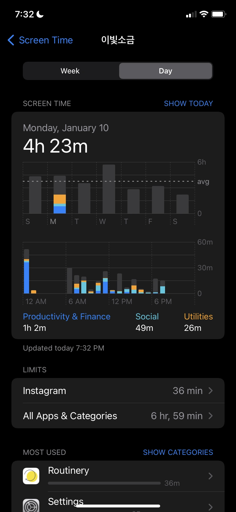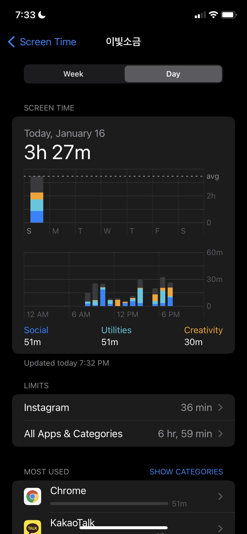 22.01.09 ~ 22.01.16 스크린 타임 기록