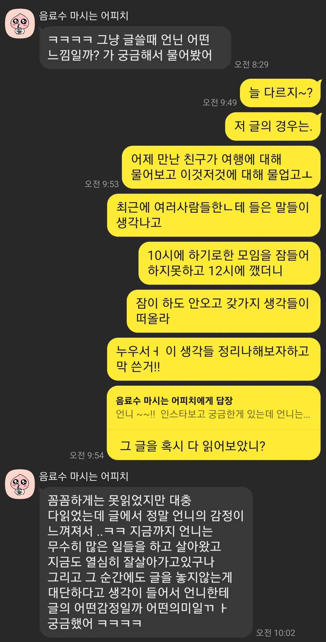 자려고 자려고 해도 잠이 안 와서 핸드폰으로 인스타 앱을 켜고 그냥 썼다.