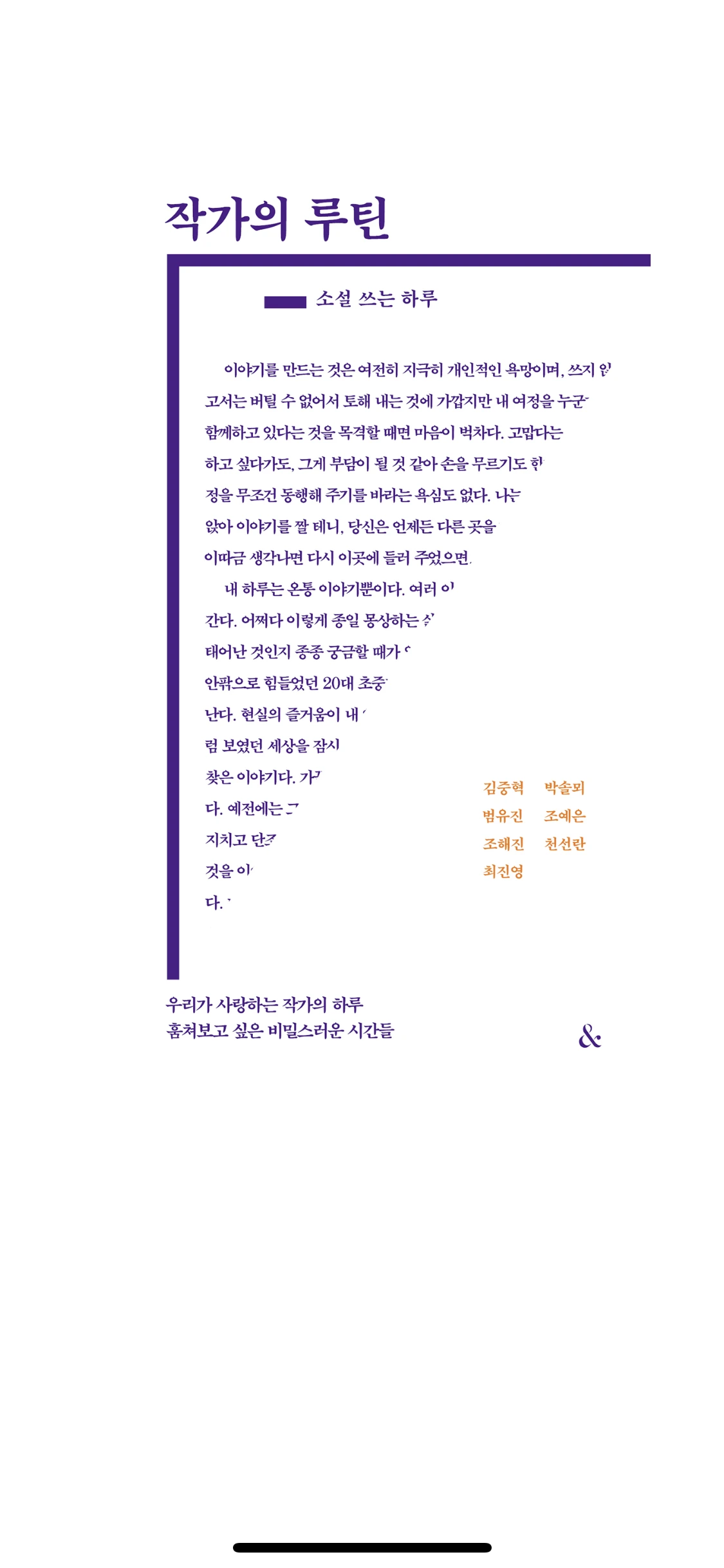 - 작가의 루틴-소설 쓰는 하루, 김중혁 박솔뫼 범유진 조예은 조해진 천선란 최진영 지음, 넥서스 펴냄