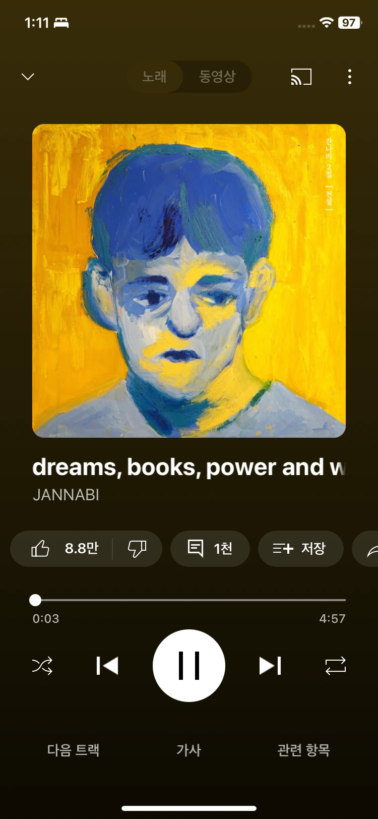 오늘 아침엔 잔나비의 꿈과 책과 힘과 벽 한 곡 반복해서 들으며 출근.