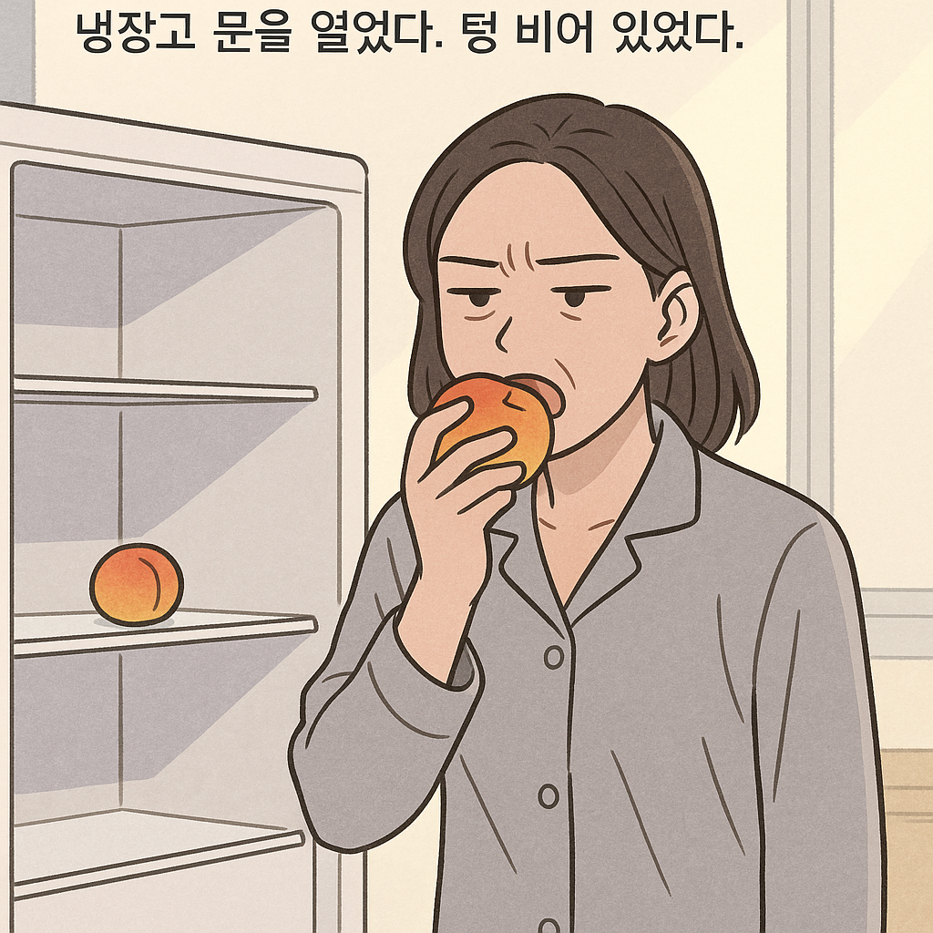 텅 비어 있었다. 아니, 복숭아 하나가 전부였다. 복숭아를 우적우적 씹으며 어제 김 부장과의 면담이 악몽처럼 떠올랐다.