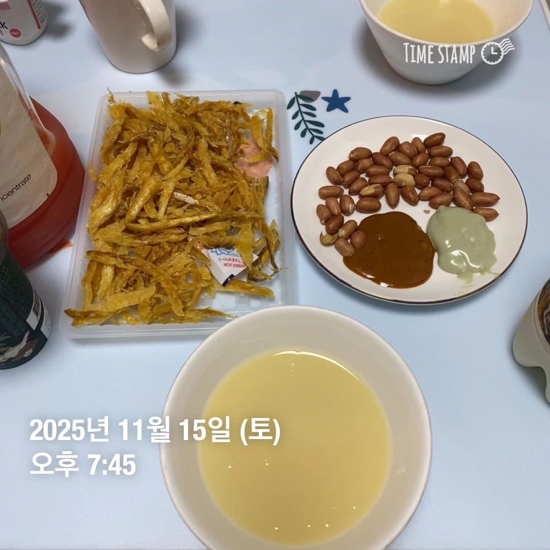 언니는 공주 밤막걸리, 먹태, 말차라떼, 요플레 닥터캡슐 복숭아까지 사왔다. 나는 오늘 정리·운동·글쓰기를 하려고 했는데, 언니와 이야기를 나누다 보니 자연스럽게 정리를 먼저 하게 됐다. 옷장도 정리하고, 어질러진 공간도 하나씩 치웠다. 언니가 있어서 심심하지 않게, 심적으로도 지치지 않고 할 수 있었다. 언니는 늘 “너 덕분에, 소영이 덕분에”라는 말을 자주 한다. 그 말이 좋아서 오늘 언니에게 말했더니, 언니는 자기도 몰랐다고 했다.